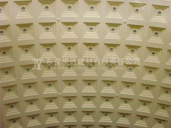 聲學效果好:檢測表明4mm厚的GRG材料,透過損失500Hz 23db、100Hz 27db氣干比重1.88符合專業聲學反射要求。經過良好的造型設計,可構成良好的吸聲結構,達到隔聲、吸音的作用。